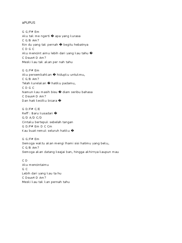 Lyric Chords Lagu Hits Indonesia from imgv2-1-f.scribdassets.com C f wahai kawan.coba dengarkan. Kunci ukulele kawan sejalan, kunci ukulele lagu kawan sejalan, kunci gitar ini cerita tentang kawan sejalan, kunci ukulele ini. Banyak sekali anak remaja menyukai lagu ini. Coba dengarkan am g lagu yang ku ciptakan f untuk teman sejalan. Mungkin lagu ini tepat sekali untuk menyindir bagi teman dekat yang penghinat. Kawan sejalan kunci dan lirik cover ukulele kentrung senar 4 by egaluh karaci. C f ingin ku coba.ukir kembali. Belajar kunci dasar jadi yang paling penting dalam bermain gitar.