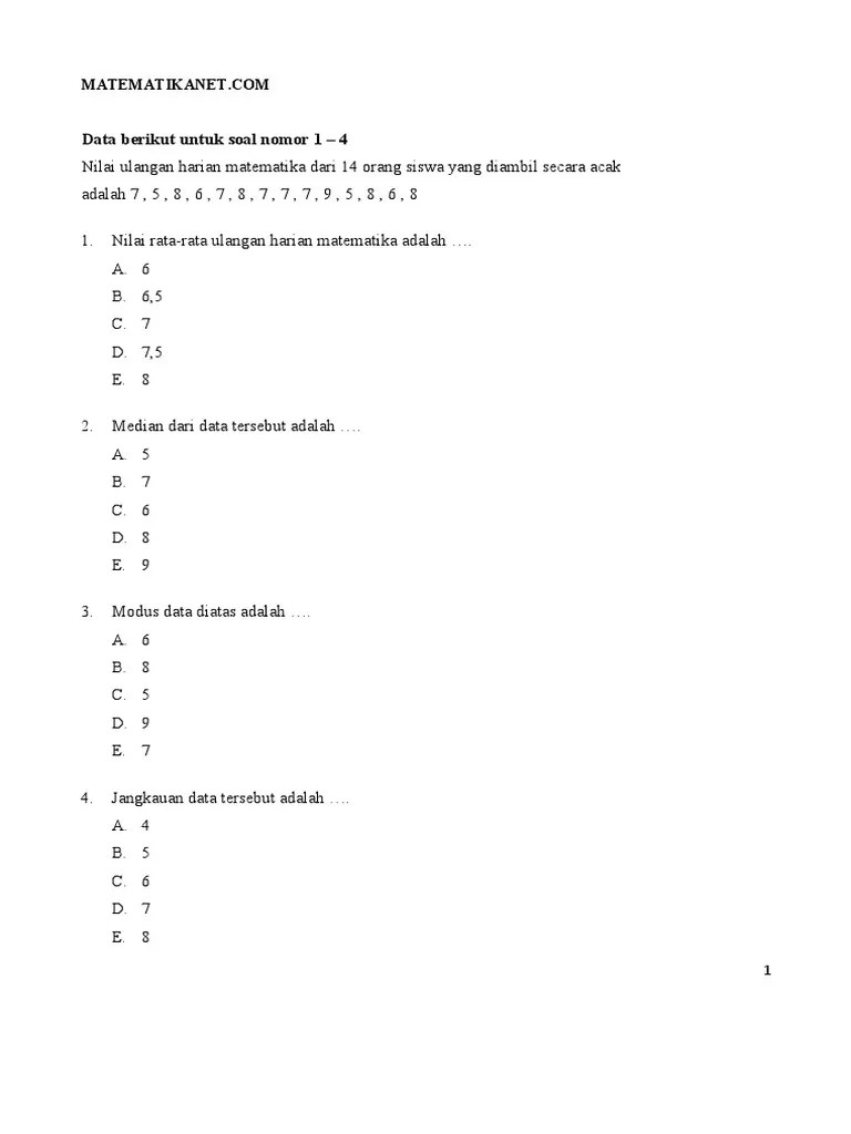 Contoh Soal Statistika Smp Kelas 8 : Soal Dan Jawaban Statistika Kumpulan Contoh Surat Dan Soal Terlengkap - 14.nilai ulangan matematika suatu kelas tercatat sebagai berikut :